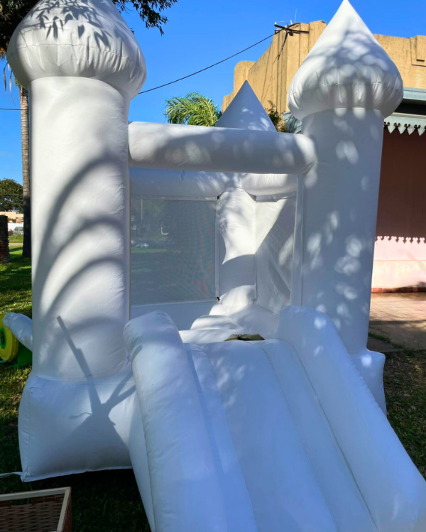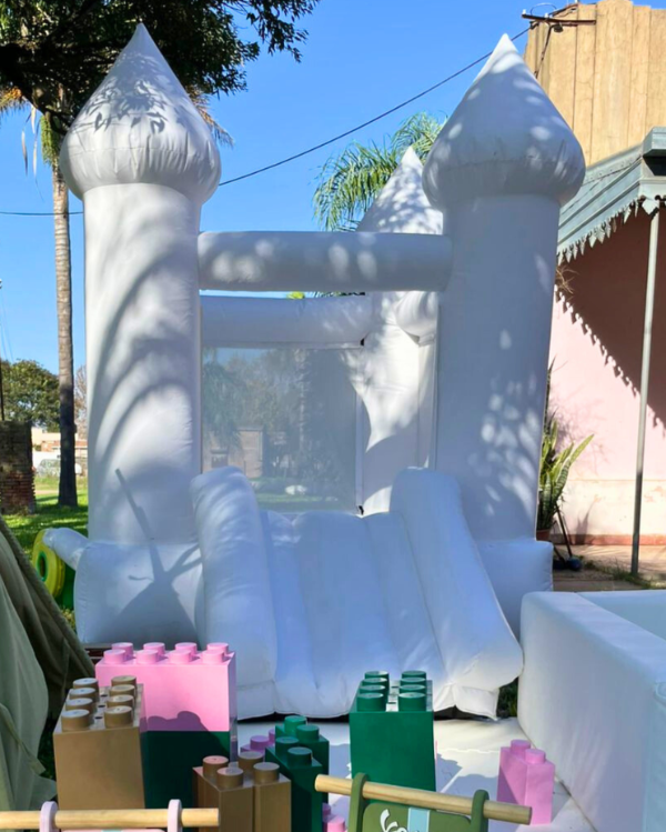 Este inflable es perfecto para casas, reuniones familiares o cumpleaños íntimos. Su diseño compacto con rampa lo convierte en una opción práctica y entretenida para los más chicos.